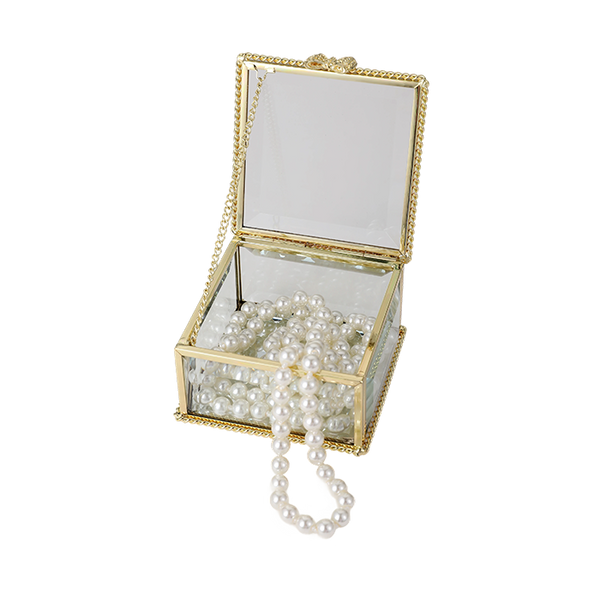 Glass Jewellery box Gold with Clear Glass (5.5 x 8.5 x 8.5 cm)